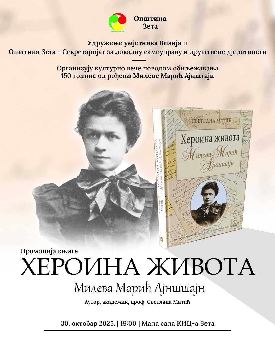 У организацији Општине „Зета“ и Удружења умјетника „Визија“, у Голубовцима је 30. октобра 2025. године, у сали КИЦ-а, обележено 150 година од рођења Милеве Марић Ајнштајн.