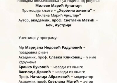 Ауторка је истакла да су Општина „Зета“ и Удружење умјетника „Визија“ једини у Црној Гори обележили 150 година од рођења Милеве Марић Ајнштајн, на чему им се захвалила.
