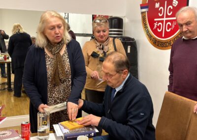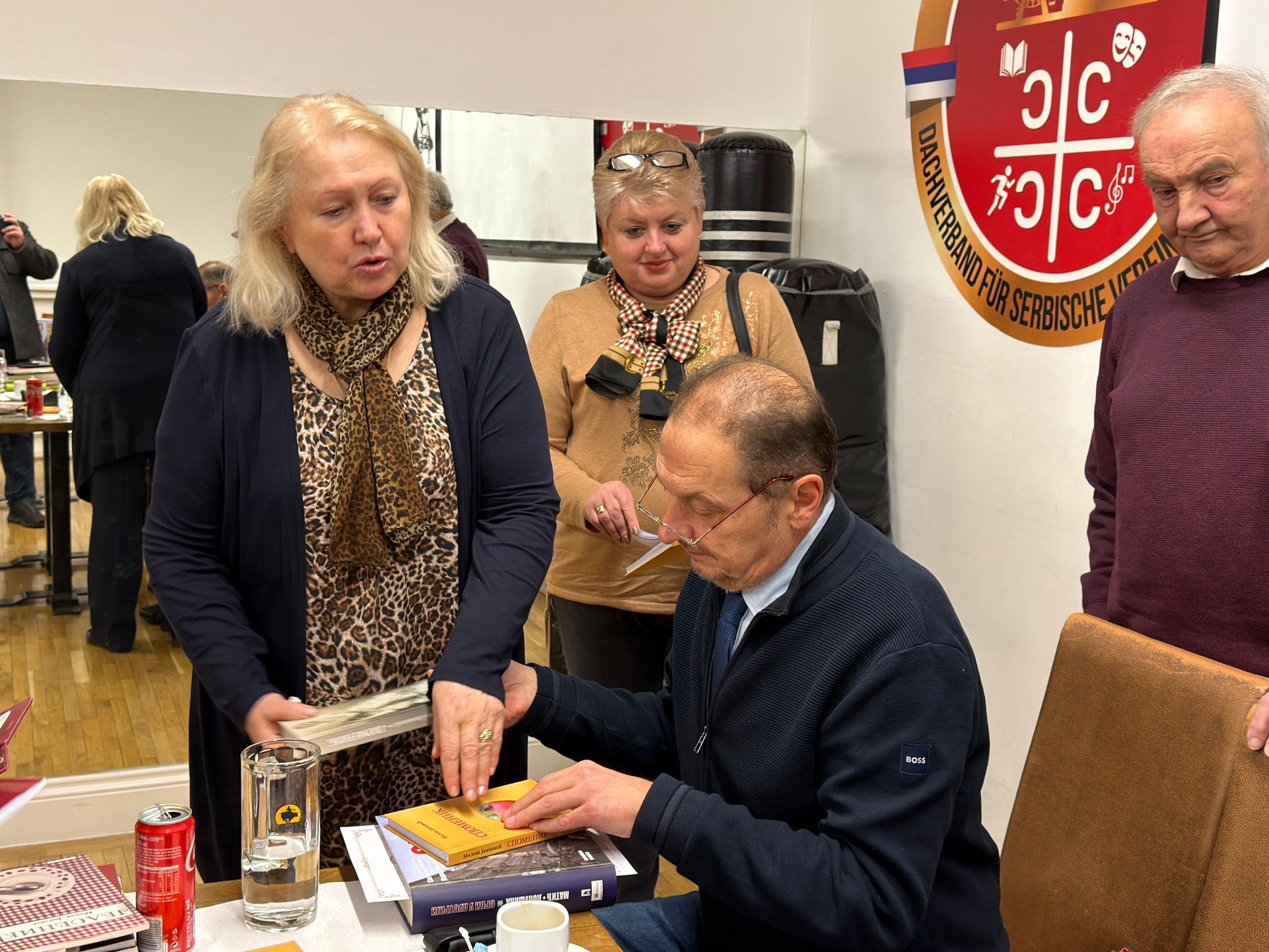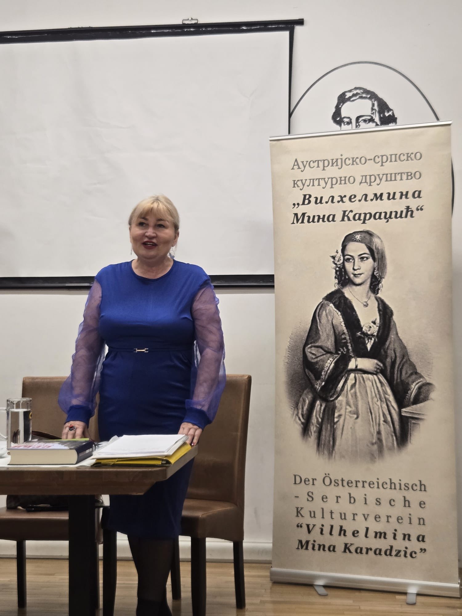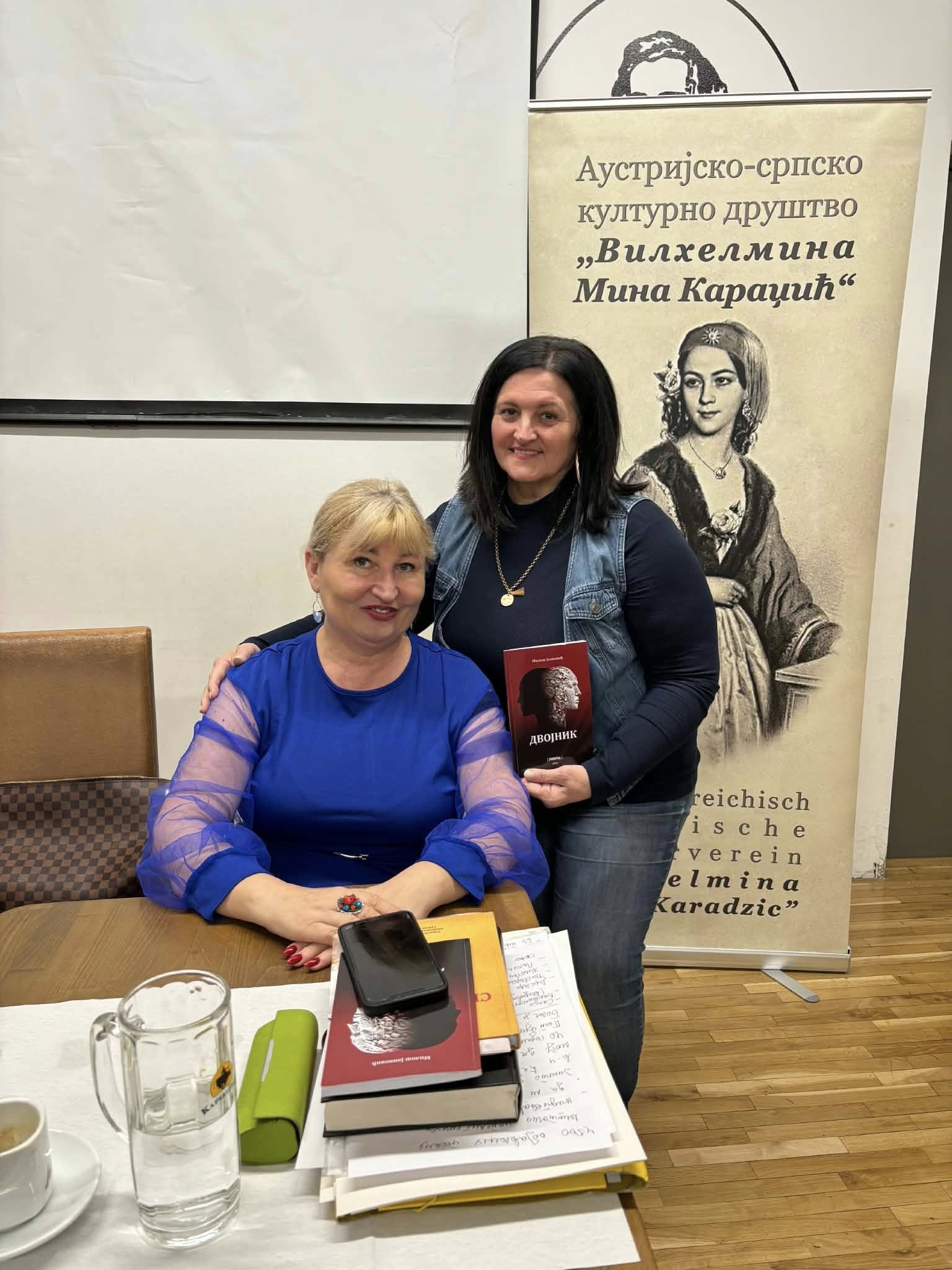 Проф. Светлана Матић је Милошу Јанковићу уручила Захвалницу у име АСКД „Вилхелмина Мина Караџић“ за одршку у раду друштва и монографију „Срби у Аустрији“, коју је изнедрила заједно са Др Марком Лопушином. За узврат Милош Јанковић је матићевој поклонио своју књигу „Небесник“.