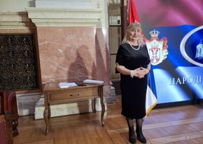 Обавестила је присутне народне посланике да је о овом предлогу информисала министре Ђорђа Милићевића на Сабору дијаспоре 2023. године и министра Николу Селаковића.