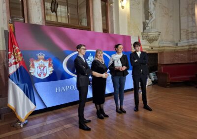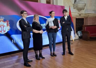Драган Станојевић, председник Одбора, подсетио је да је на 150. годишњицу рођења Милеве Марић Ајнштајн у Дому Народне скупштине, уприличена изложба у њену част, као и да је том приликом Математичкој гимназији поклоњена биста са њеним ликом.